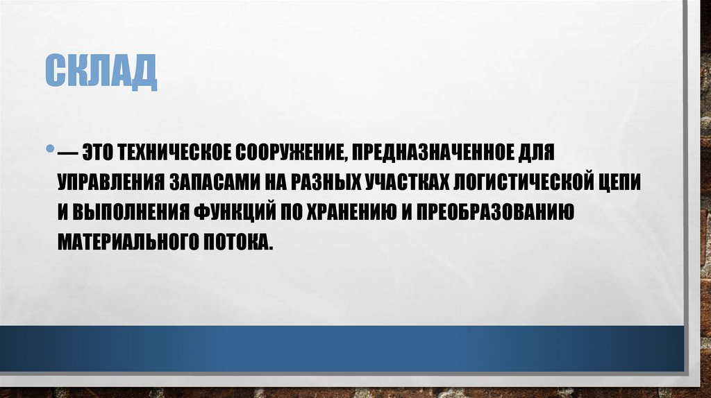 СКЛАД• — ЭТО ТЕХНИЧЕСКОЕ СООРУЖЕНИЕ, ПРЕДНАЗНАЧЕННОЕ ДЛЯ