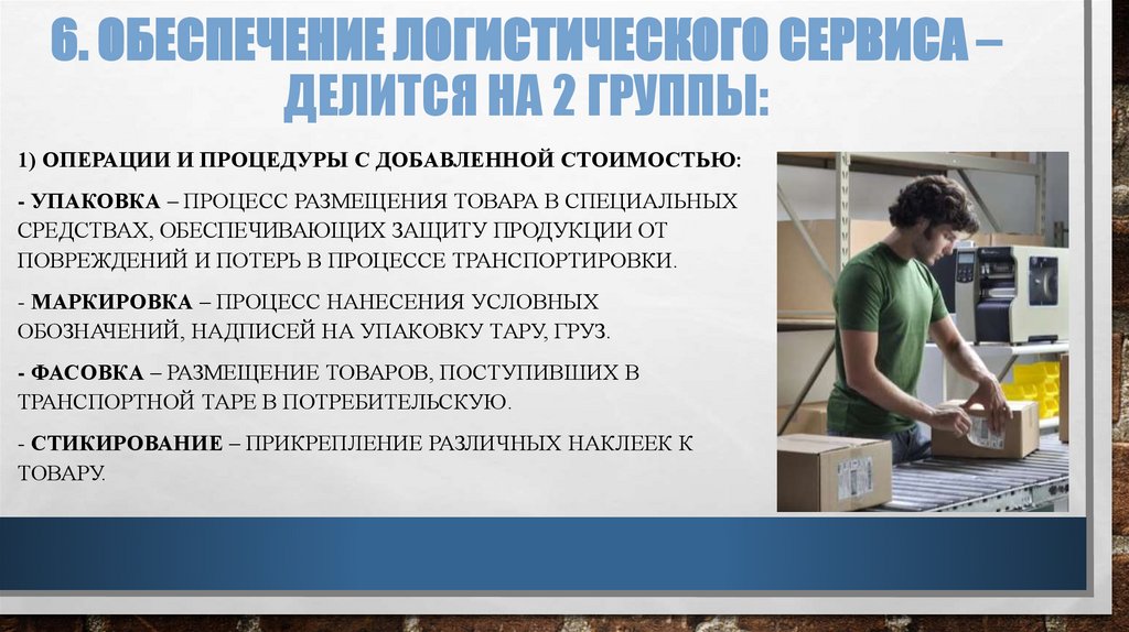 12. 6. Обеспечение логистического сервиса – делится на 2 группы: