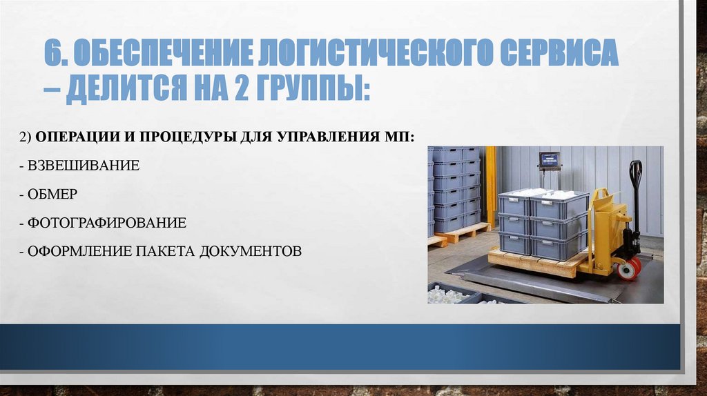 6. ОБЕСПЕЧЕНИЕ ЛОГИСТИЧЕСКОГО СЕРВИСА– ДЕЛИТСЯ НА 2 ГРУППЫ: