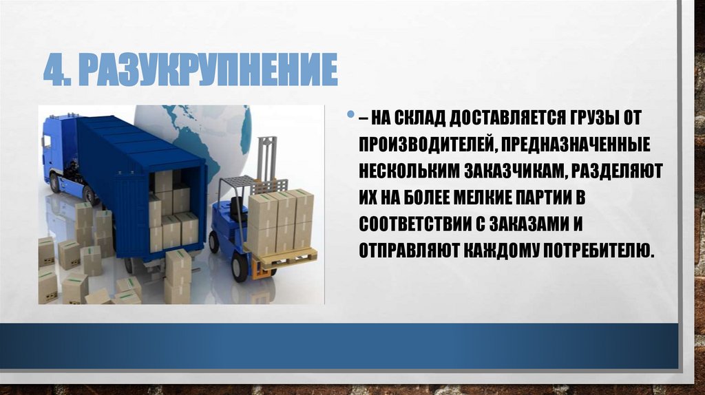 4. РАЗУКРУПНЕНИЕ• – НА СКЛАД ДОСТАВЛЯЕТСЯ ГРУЗЫ ОТ