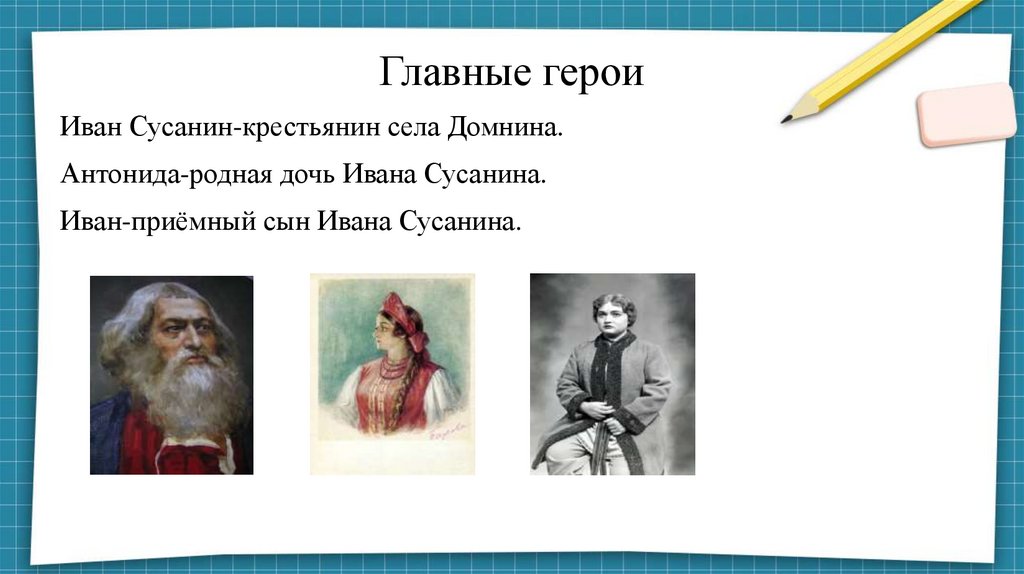 Иван Сусанин-крестьянин села Домнина.Антонида-родная дочь Ивана Сусанина.