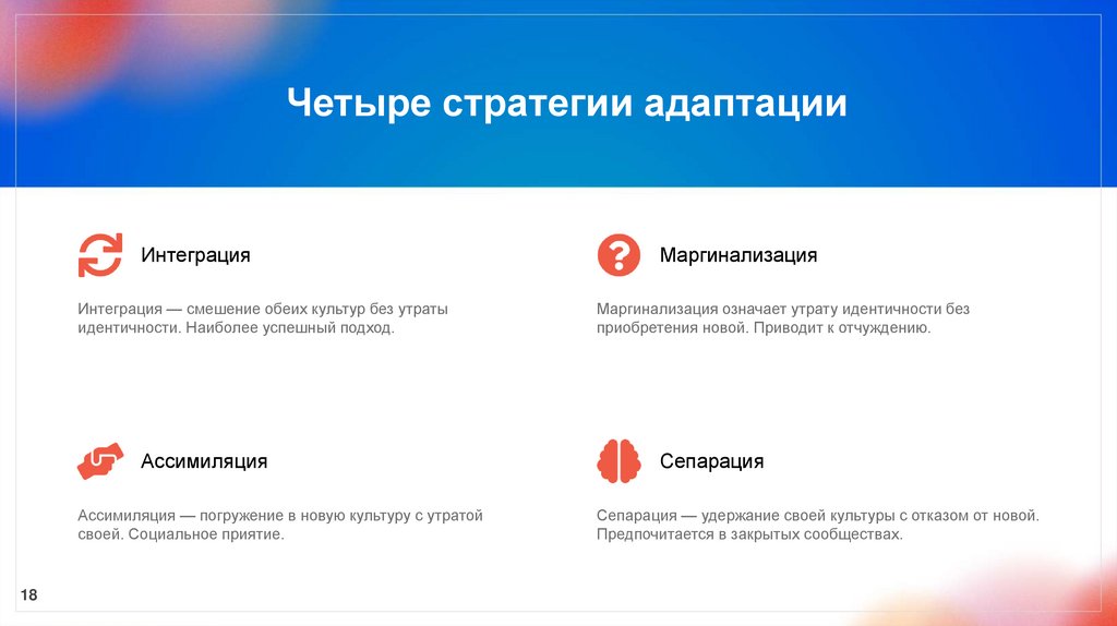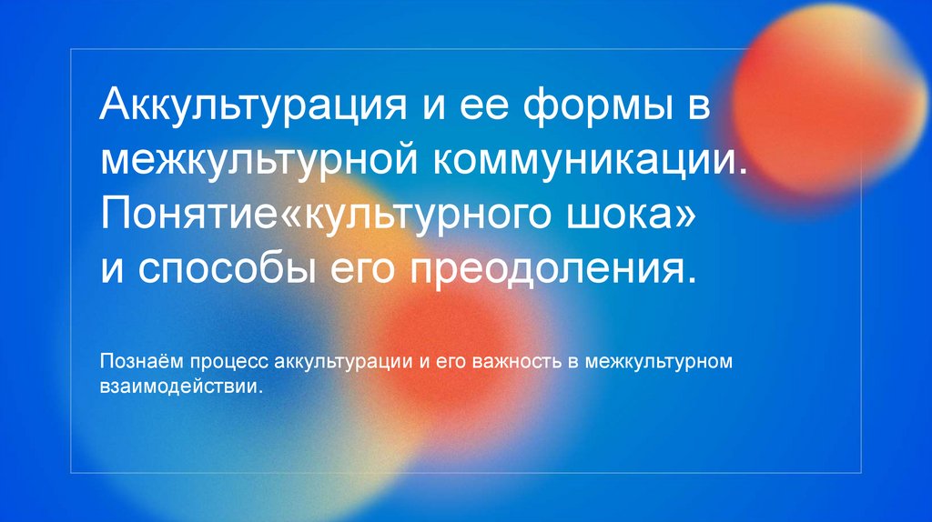 Аккультурация и ее формы вмежкультурной коммуникации.