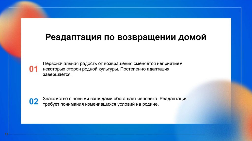 Знакомство с новыми взглядами обогащает человека. Реадаптация