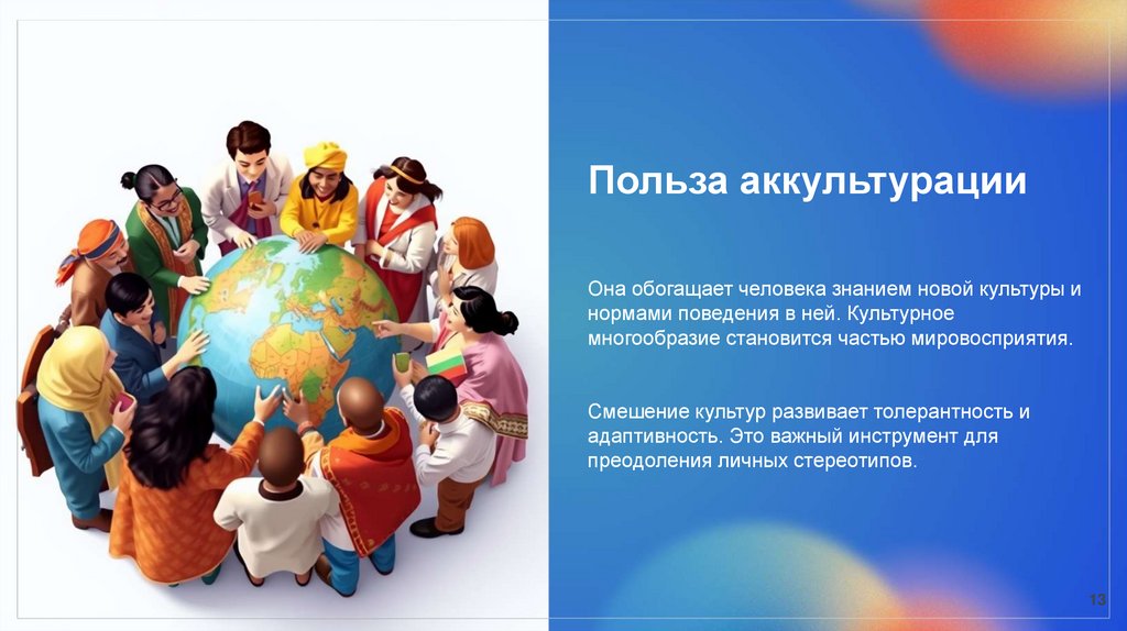 Польза аккультурацииОна обогащает человека знанием новой культуры и
