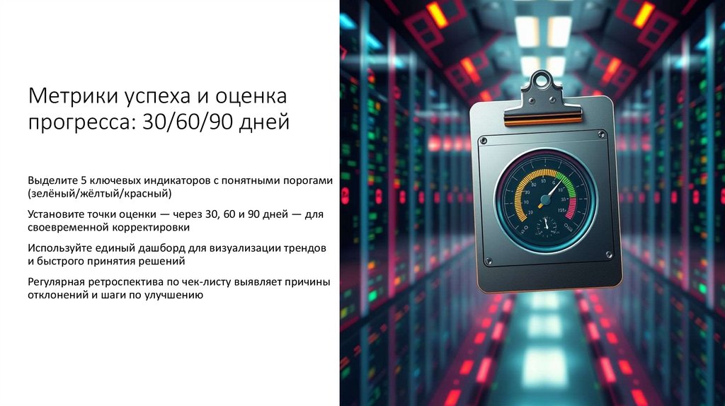 Метрики успеха и оценкапрогресса: 30/60/90 дней