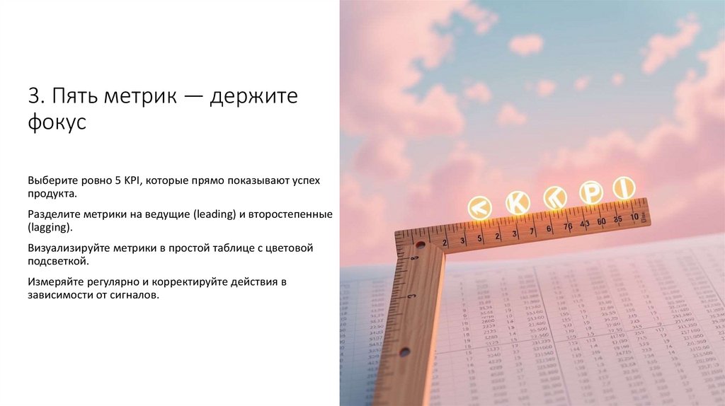 В KPI: сокращение метрик до наиболее значимых пяти.