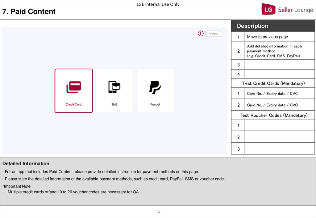- For an app that includes Paid Content, please provide detailed instruction for payment methods on this page.