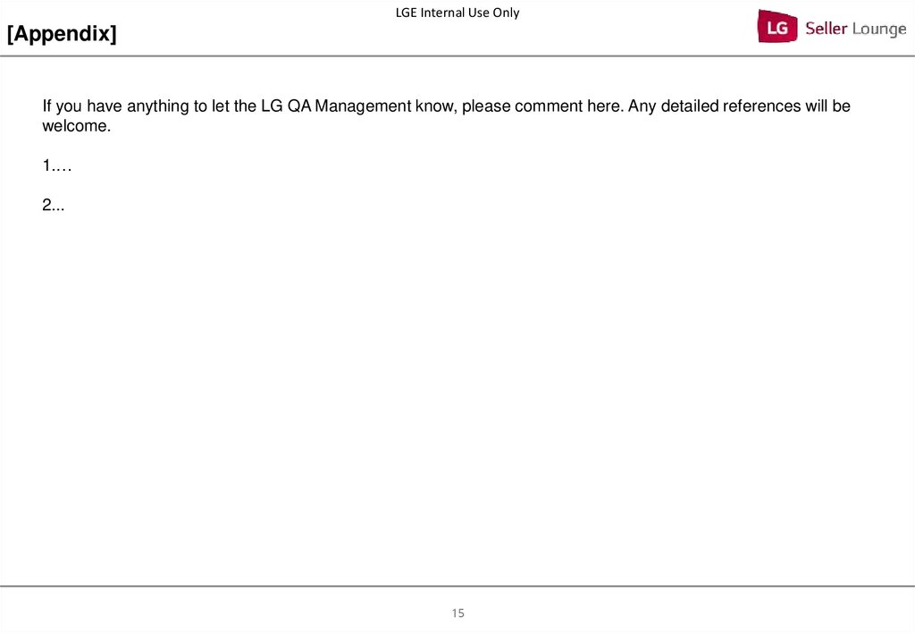 If you have anything to let the LG QA Management know, please comment here. Any detailed references will be