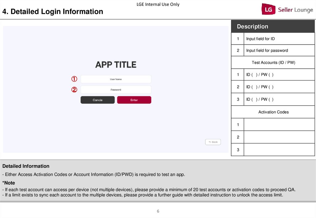 - Either Access Activation Codes or Account Information (ID/PWD) is required to test an app.