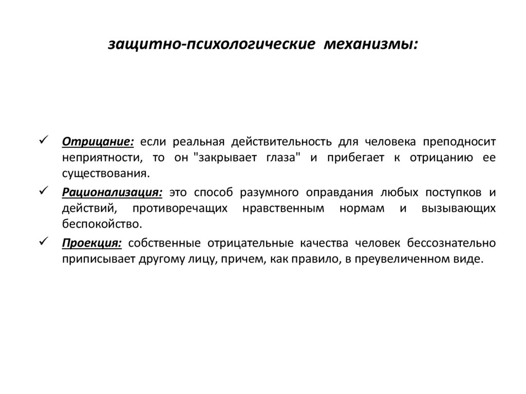 Отрицание: если реальная действительность для человека преподноситнеприятности, то он "закрывает глаза" и прибегает к отрицанию ее