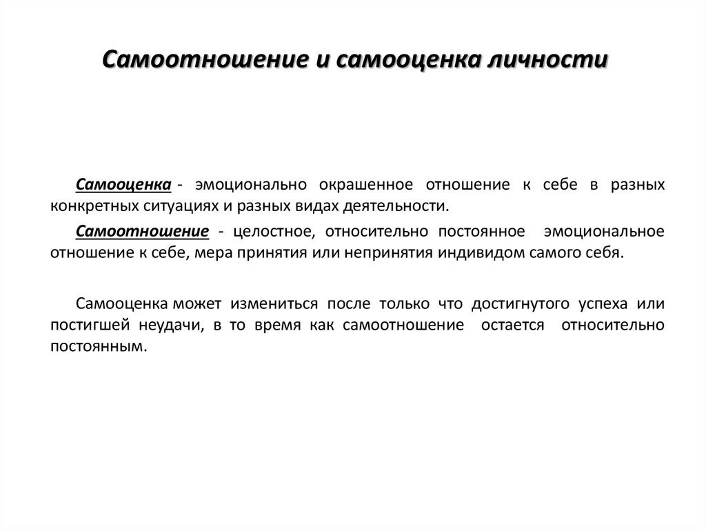 Самоотношение - целостное, относительно постоянное эмоциональное