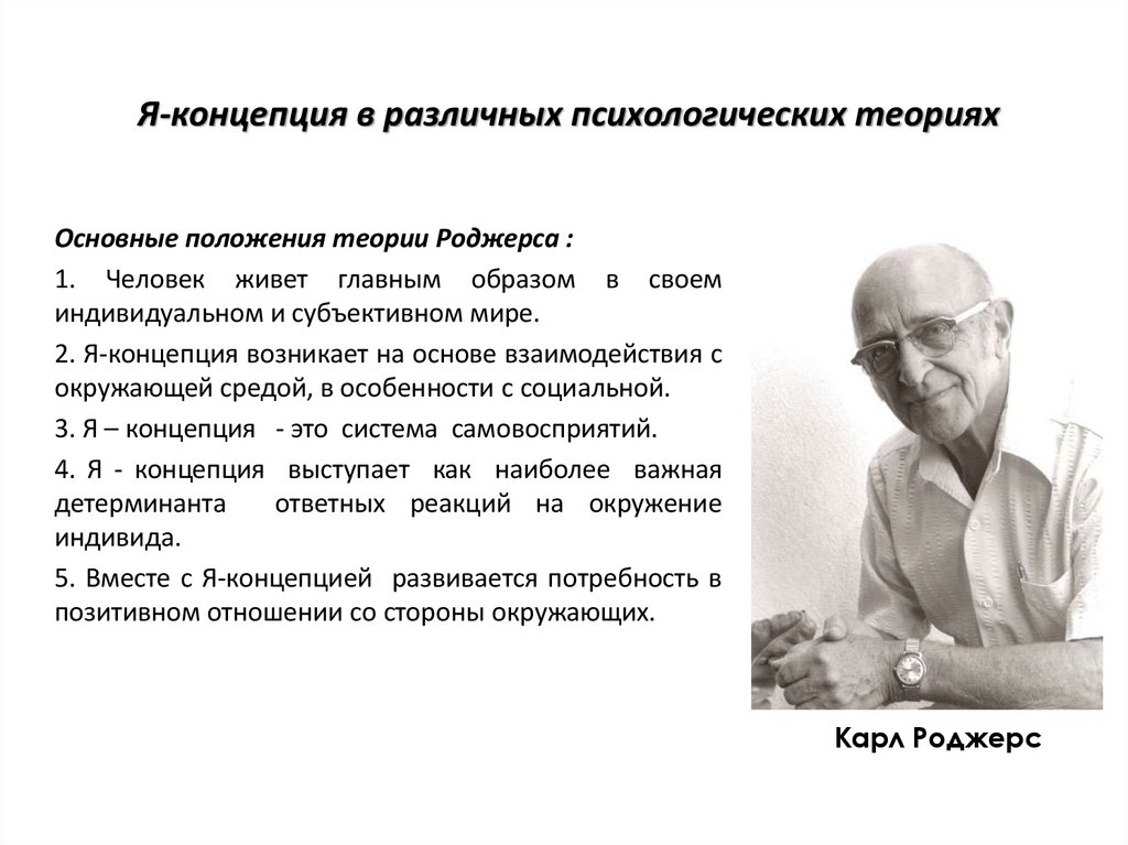 Основные положения теории Роджерса :1. Человек живет главным образом в своем
