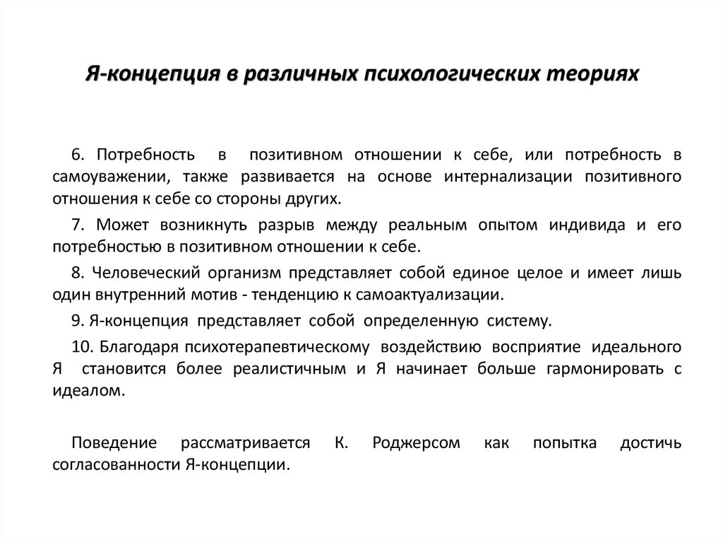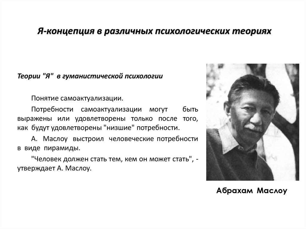 Теории "Я" в гуманистической психологииПонятие самоактуализации.