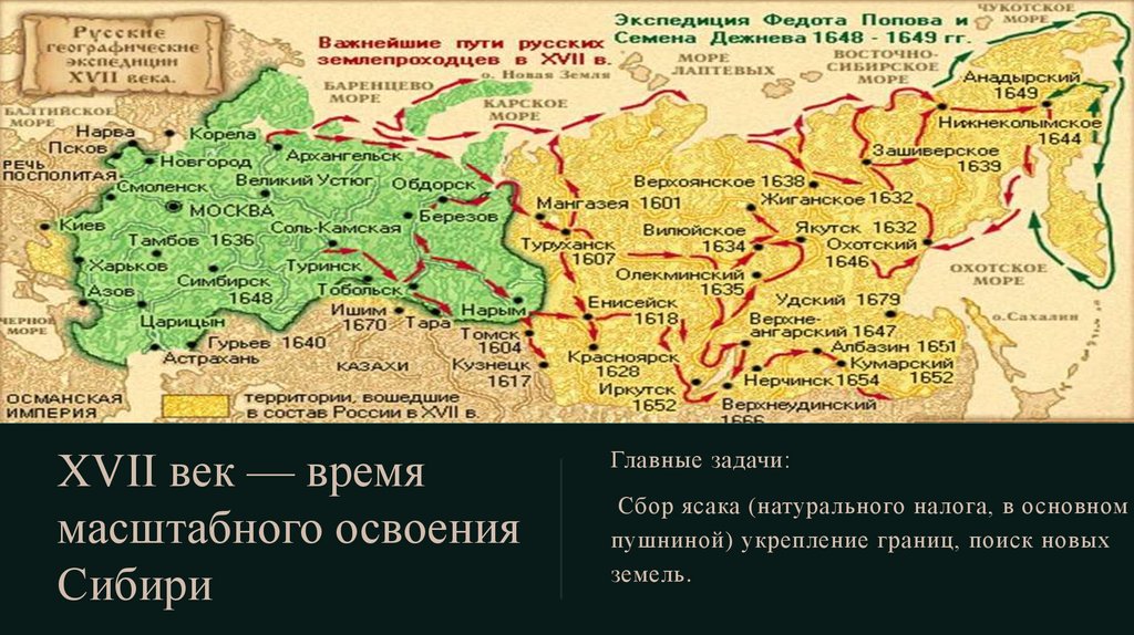 Главные задачи:Сбор ясака (натурального налога, в основном