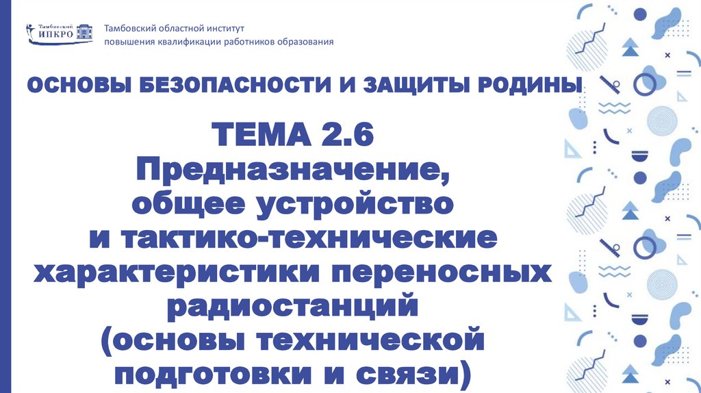 1. ТЕМА 2.6 Предназначение, общее устройство и тактико-технические характеристики переносных радиостанций (основы технической