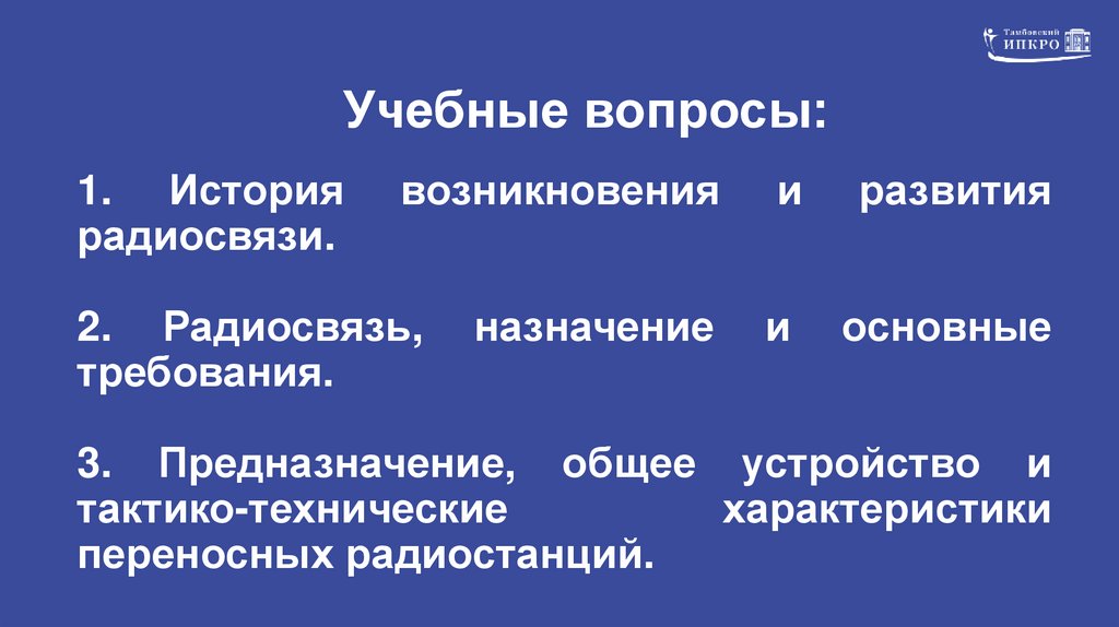 2. Учебные вопросы: