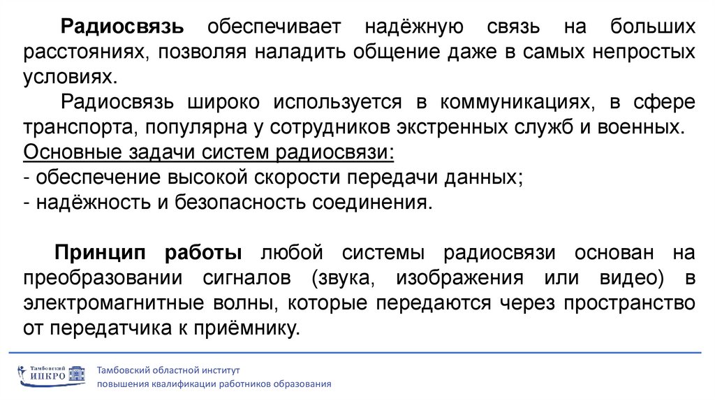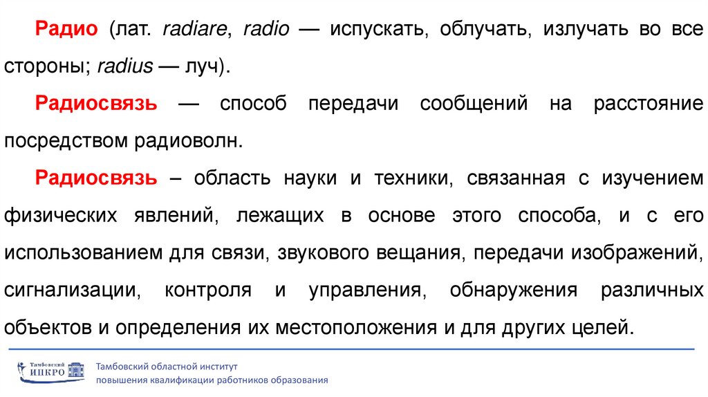 Радиосвязь – область науки и техники, связанная с изучением