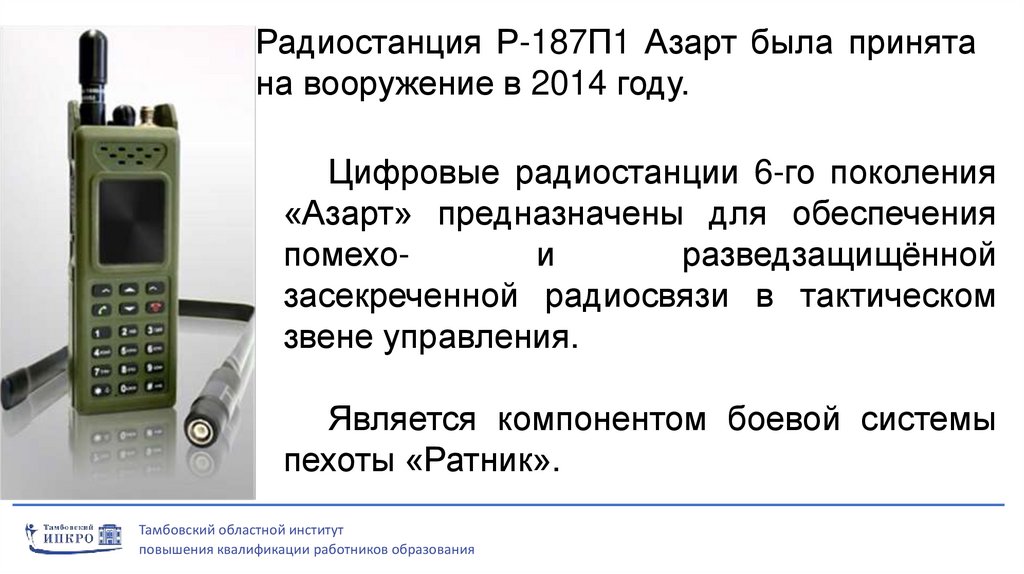 Радиостанция Р-187П1 Азарт была принятана вооружение в 2014 году.