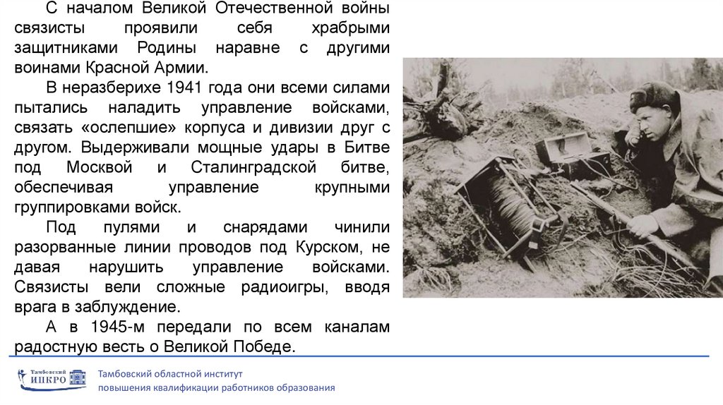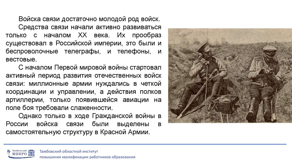 Войска связи достаточно молодой род войск.Средства связи начали активно развиваться
