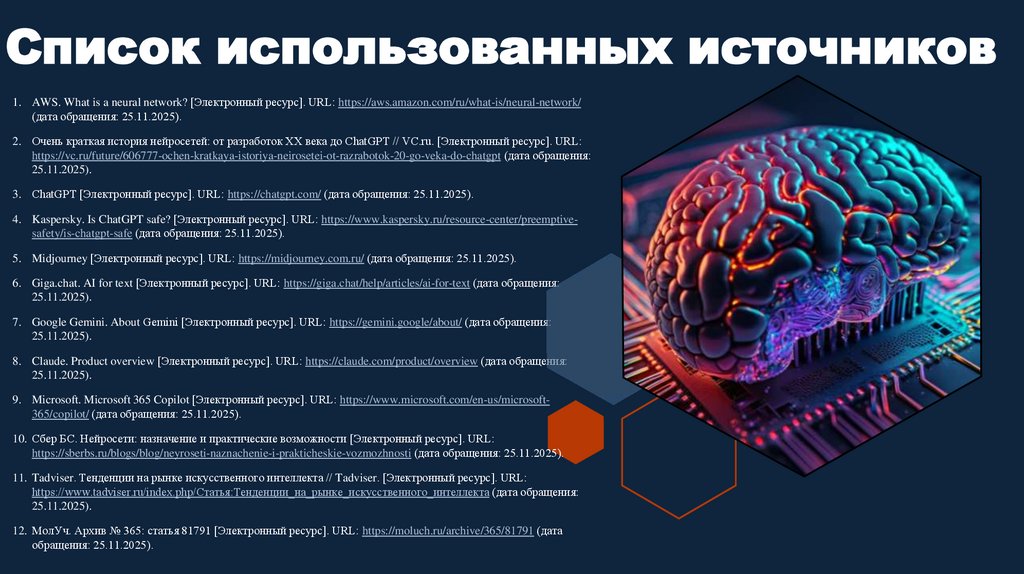 1. AWS. What is a neural network? [Электронный ресурс]. URL: https://aws.amazon.com/ru/what-is/neural-network/(дата обращения: 25.11.2025).