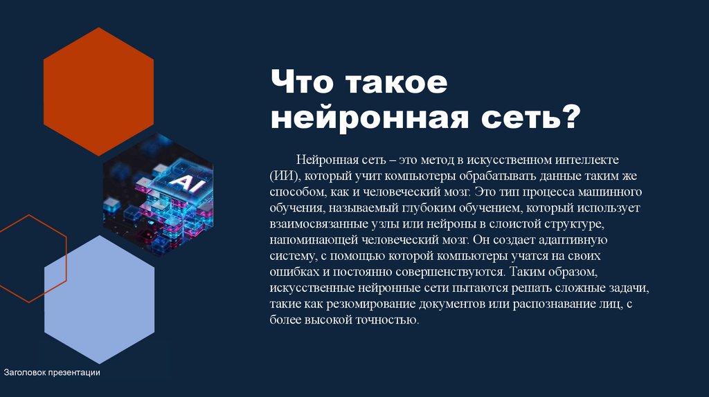 Нейронная сеть – это метод в искусственном интеллекте(ИИ), который учит компьютеры обрабатывать данные таким же