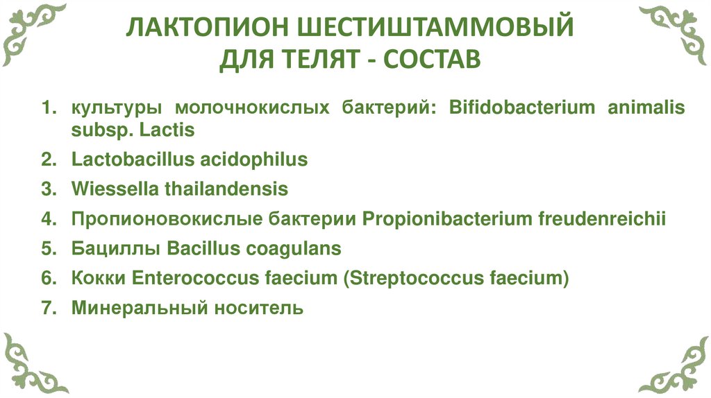 4. ЛАКТОПИОН ШЕСТИШТАММОВЫЙ ДЛЯ ТЕЛЯТ - СОСТАВ
