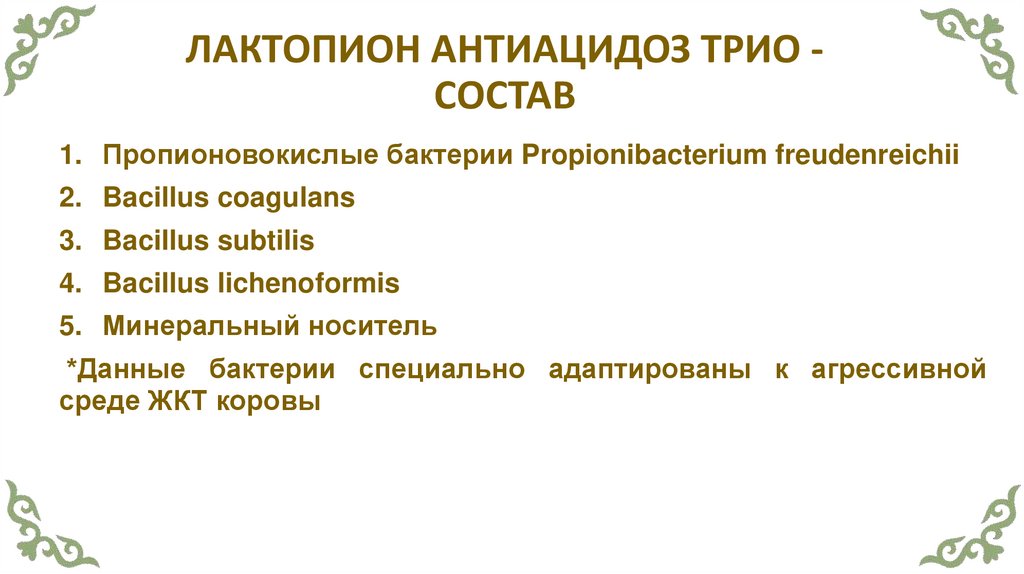 ЛАКТОПИОН АНТИАЦИДОЗ ТРИО СОСТАВ1. Пропионовокислые бактерии Propionibacterium freudenreichii