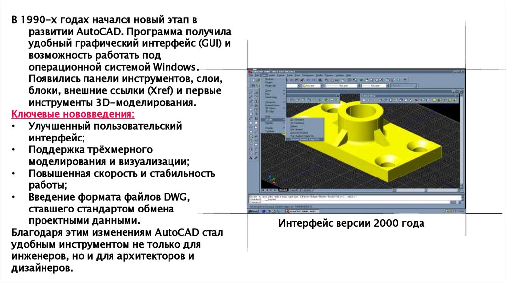В 1990-х годах начался новый этап вразвитии AutoCAD. Программа получила