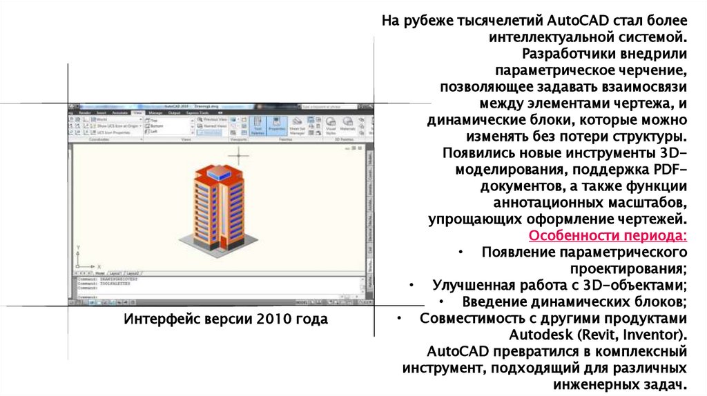 Интерфейс версии 2010 годаНа рубеже тысячелетий AutoCAD стал более
