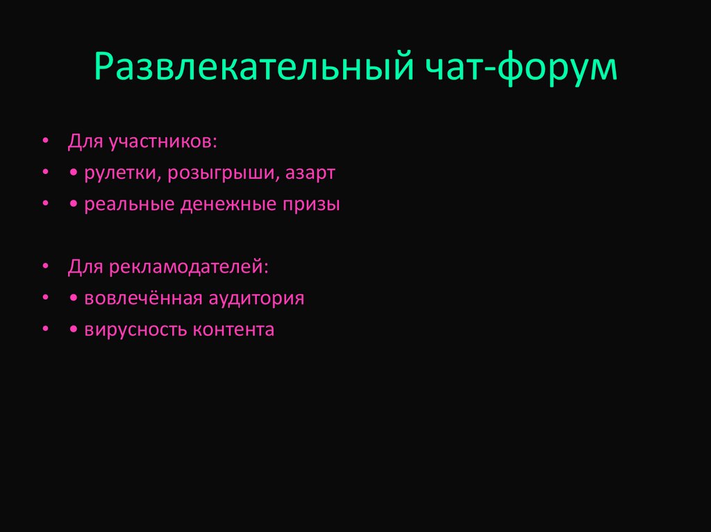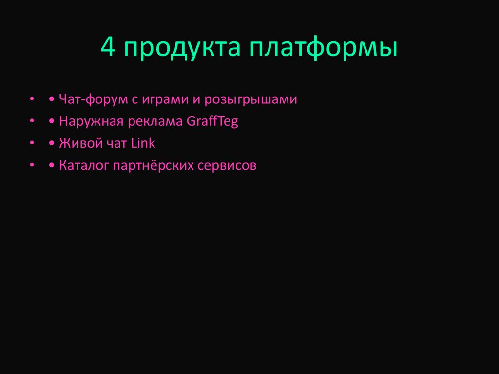 4 продукта платформы• Чат-форум с играми и розыгрышами