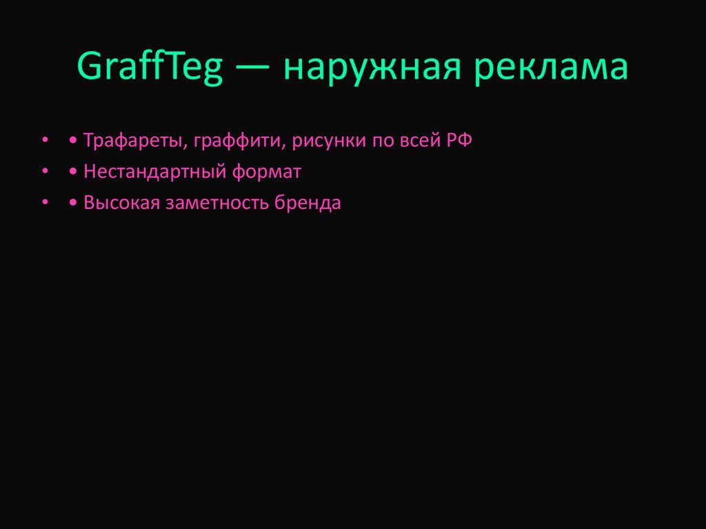 GraffTeg — наружная реклама• • Трафареты, граффити, рисунки по всей РФ