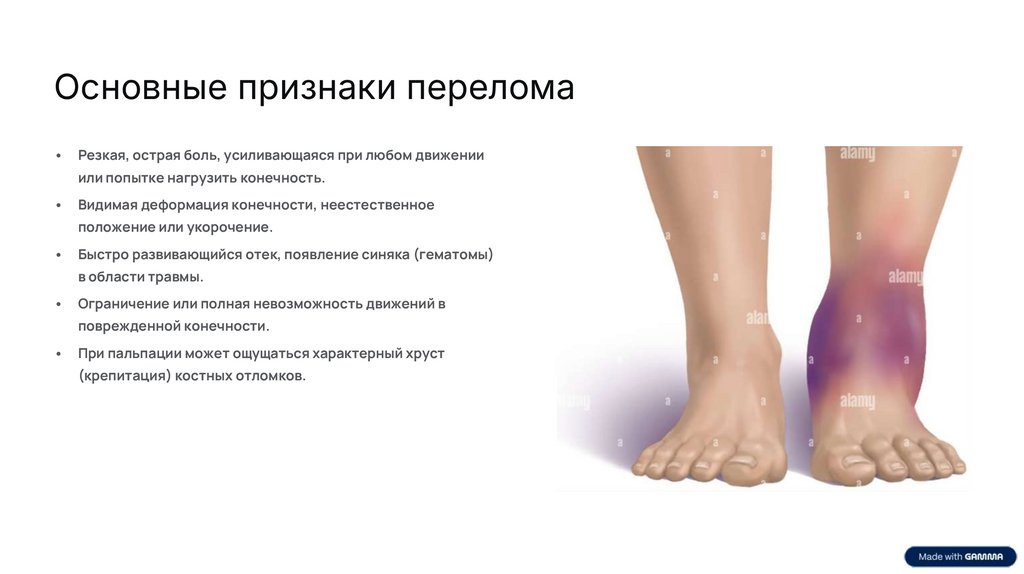 Основные признаки переломаРезкая, острая боль, усиливающаяся при любом движении