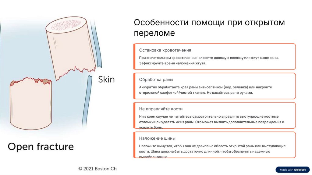 отломки или удалять их из раны. Это может вызвать дополнительные повреждения и