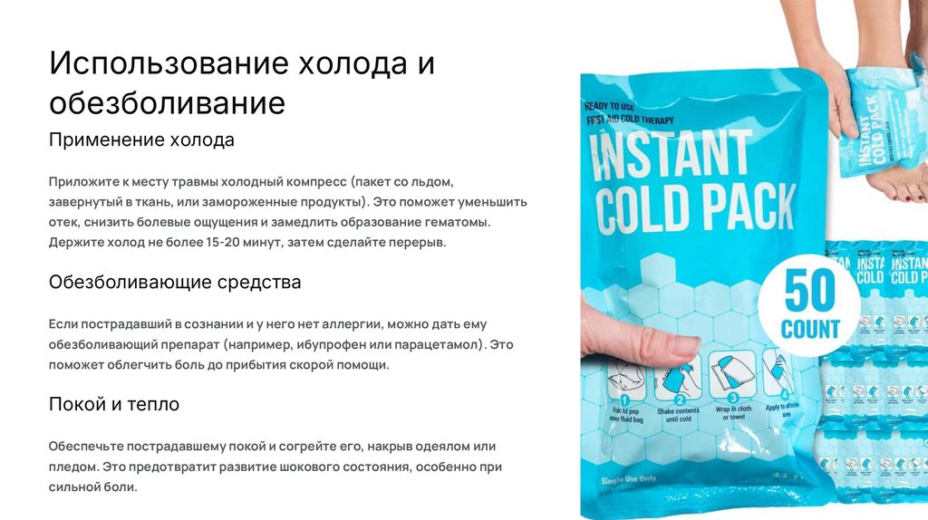 отек, снизить болевые ощущения и замедлить образование гематомы.