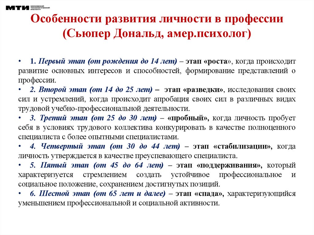 • В рамках научных психологических теорий изучаютсяпроблемы профессионального развития; довольно широко
