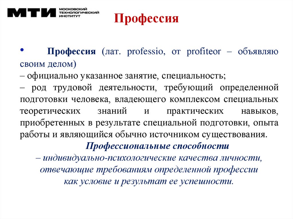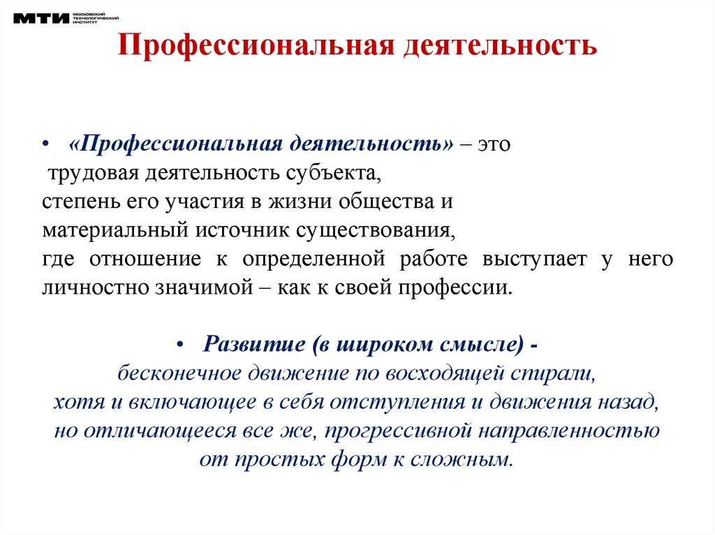 • «Профессиональная деятельность» – этотрудовая деятельность субъекта,