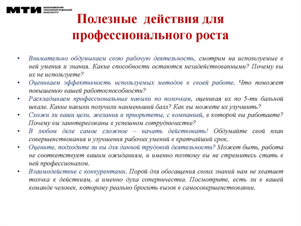 совершенствования и улучшения рабочих умений в кратчайший срок.