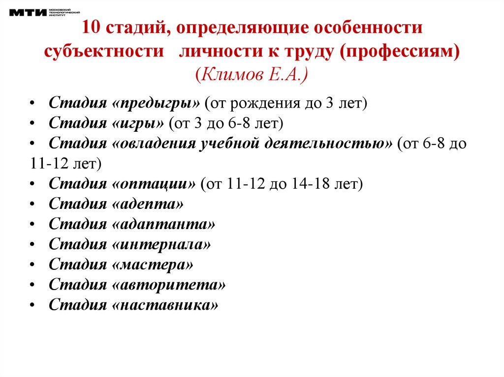 Классификация профессий(Евгения Александровича Климова, психолог)