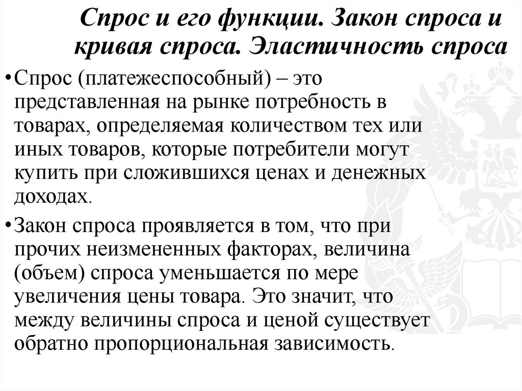 3. Спрос и его функции. Закон спроса и кривая спроса.