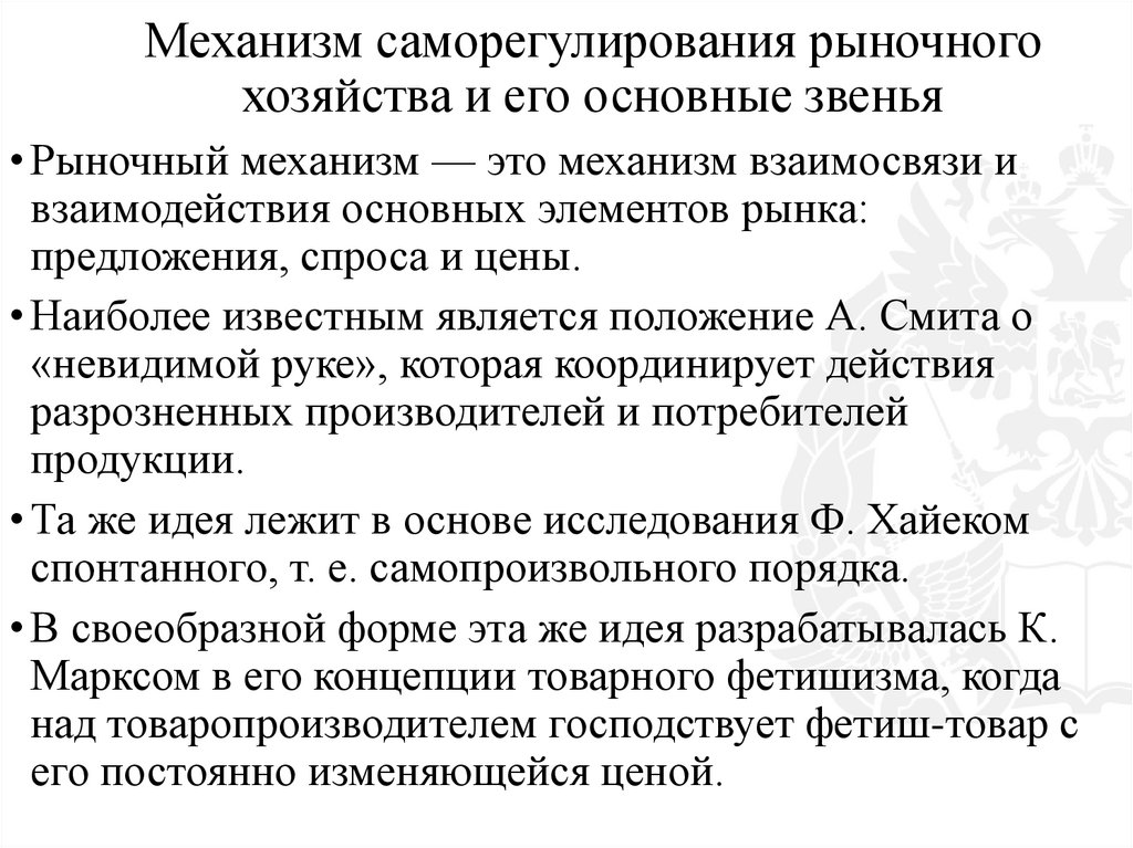 Спонтанная координация, «стихийный порядок»Рыночная экономика