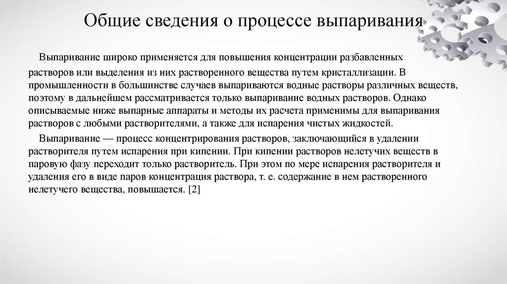 Выпаривание — процесс концентрирования растворов, заключающийся в удалении