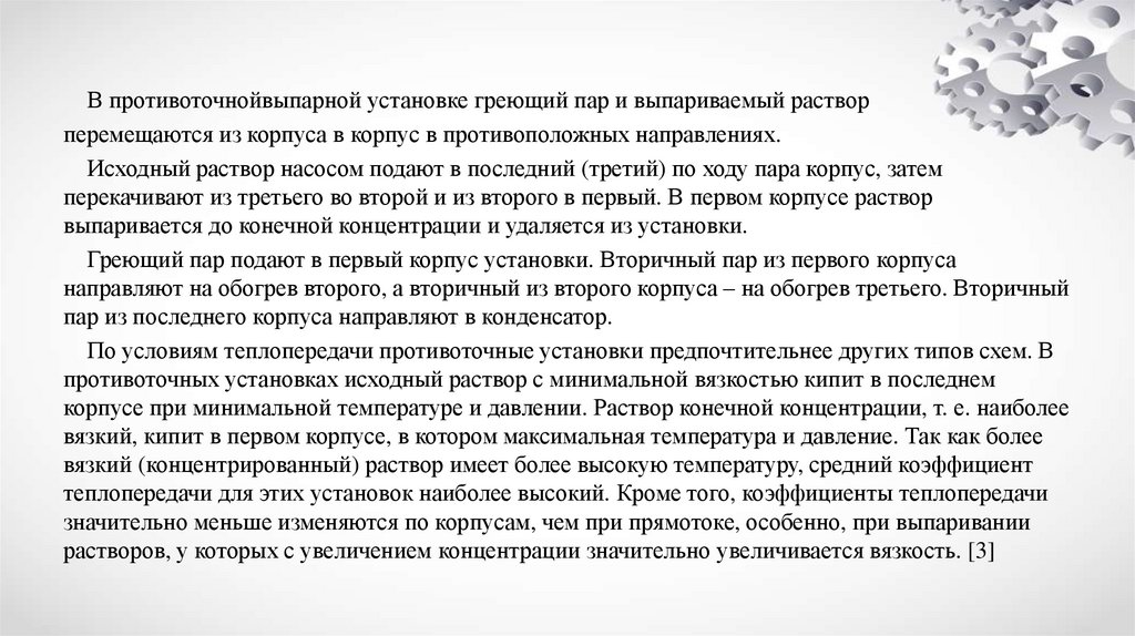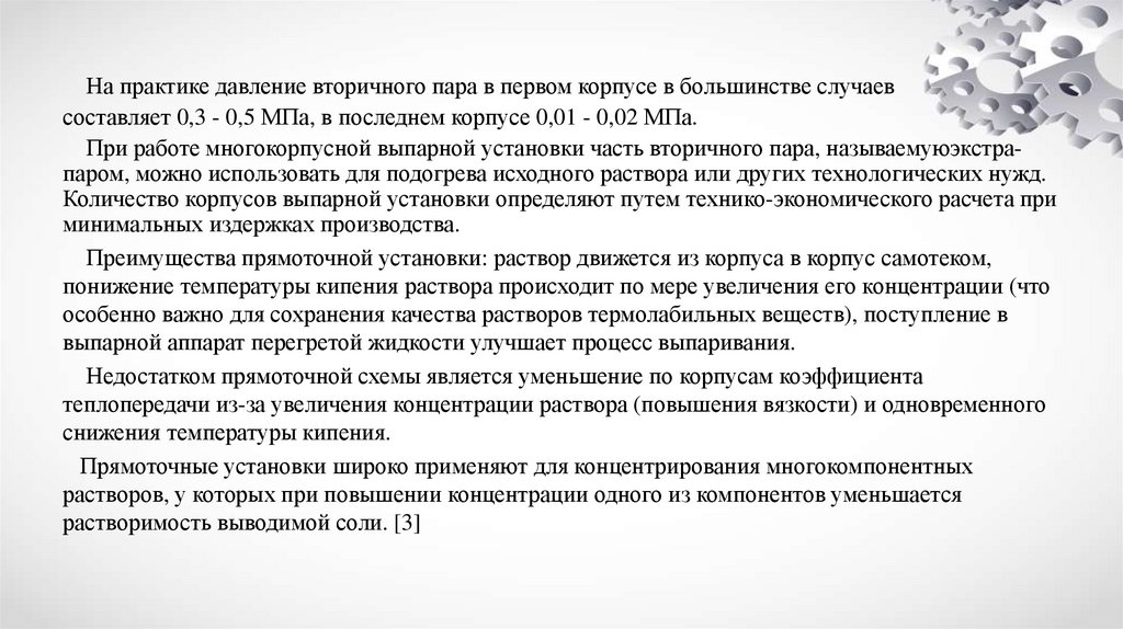 регулирования процесса (необходимо регулировать процесс в каждом корпусе) и потери теплоты с