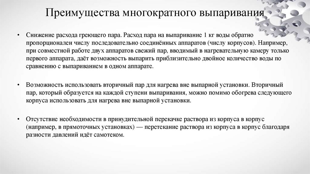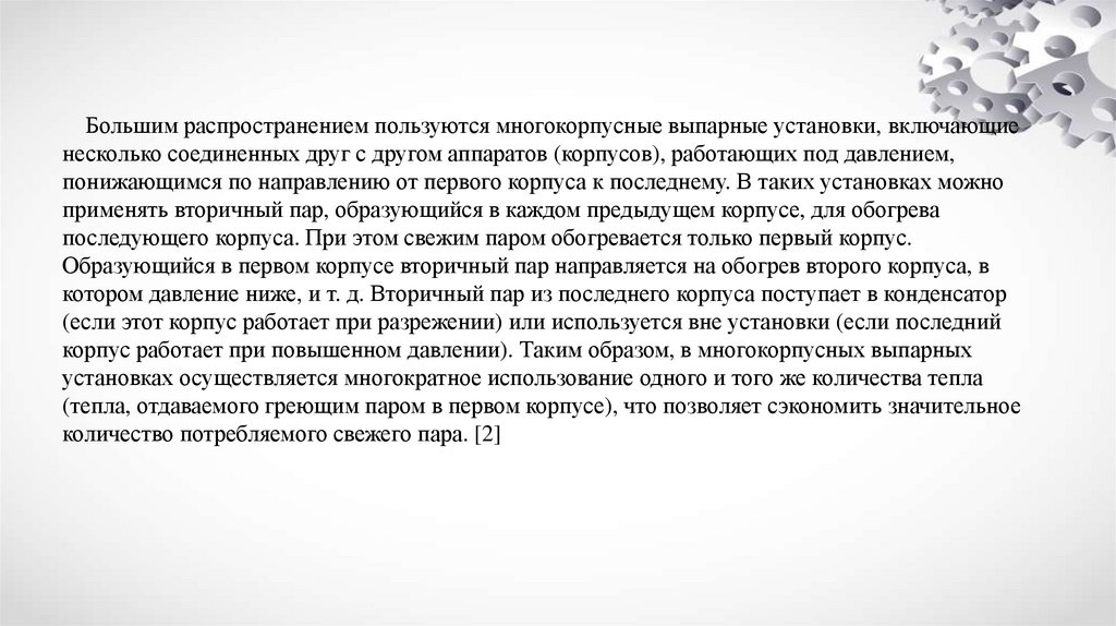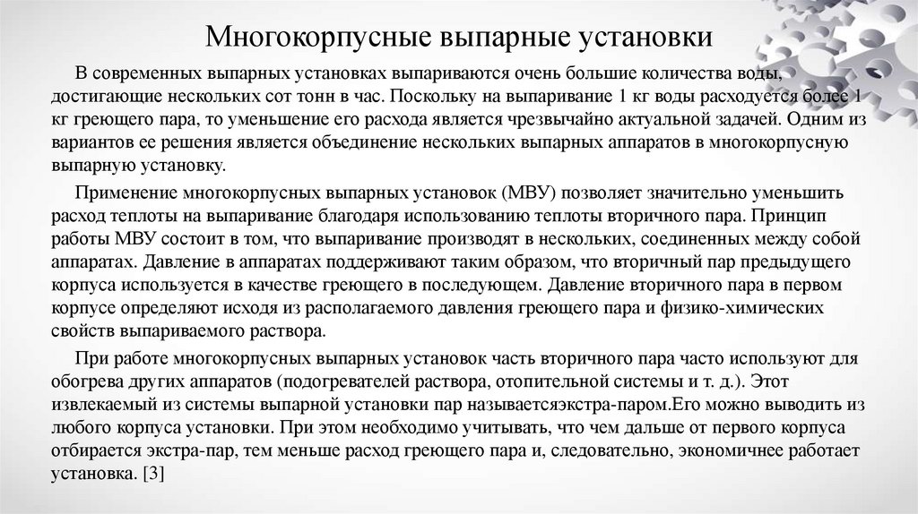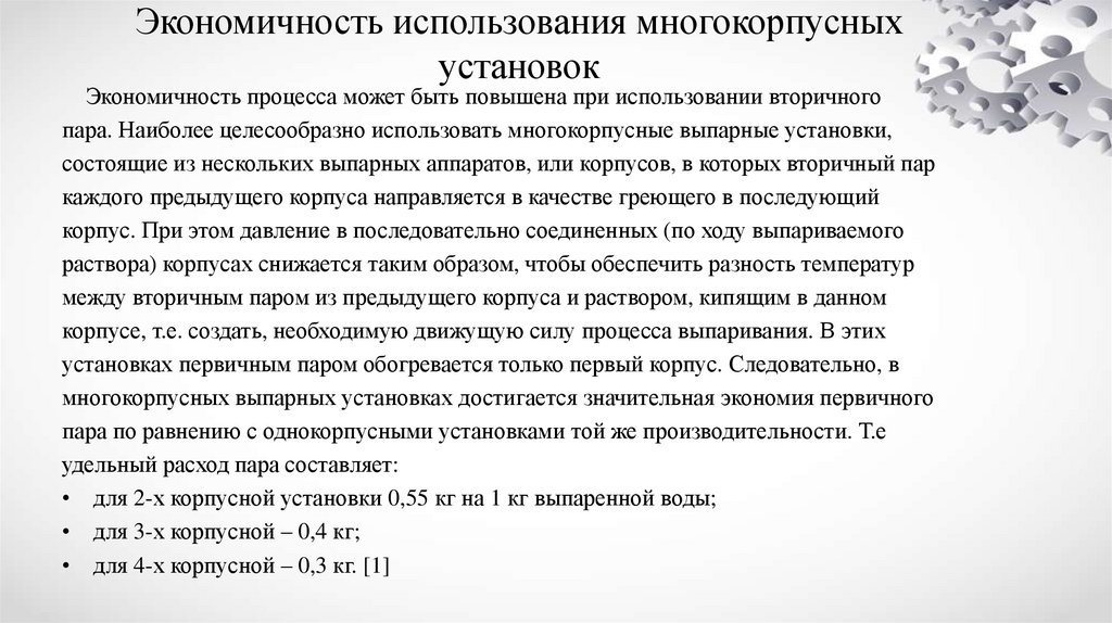 Применение многокорпусных выпарных установок (МВУ) позволяет значительно уменьшить