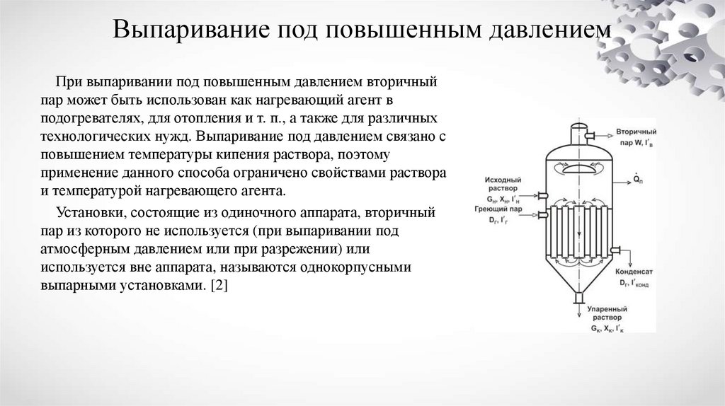 Выпаривание под повышенным давлениемПри выпаривании под повышенным давлением вторичный
