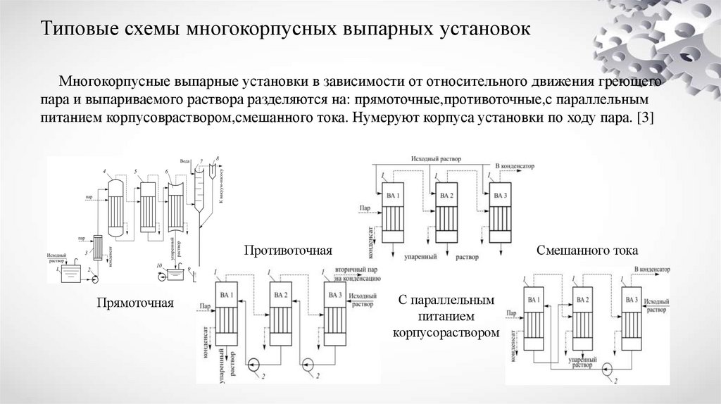 перетекает по одним корпусам прямоточно, а по остальным – противоточно. Применяют эти