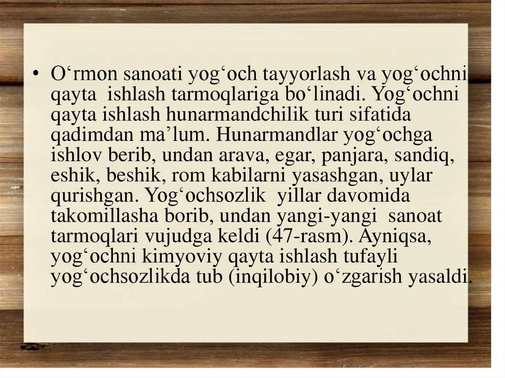 8-sinf. Geografiya. YOG`OCHNI QAYTA ISHLASH SANOATI (2)