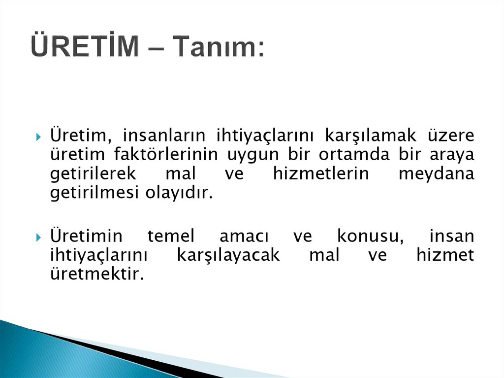 Üretim,insanların ihtiyaçlarını karşılamak üzere