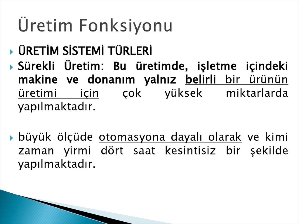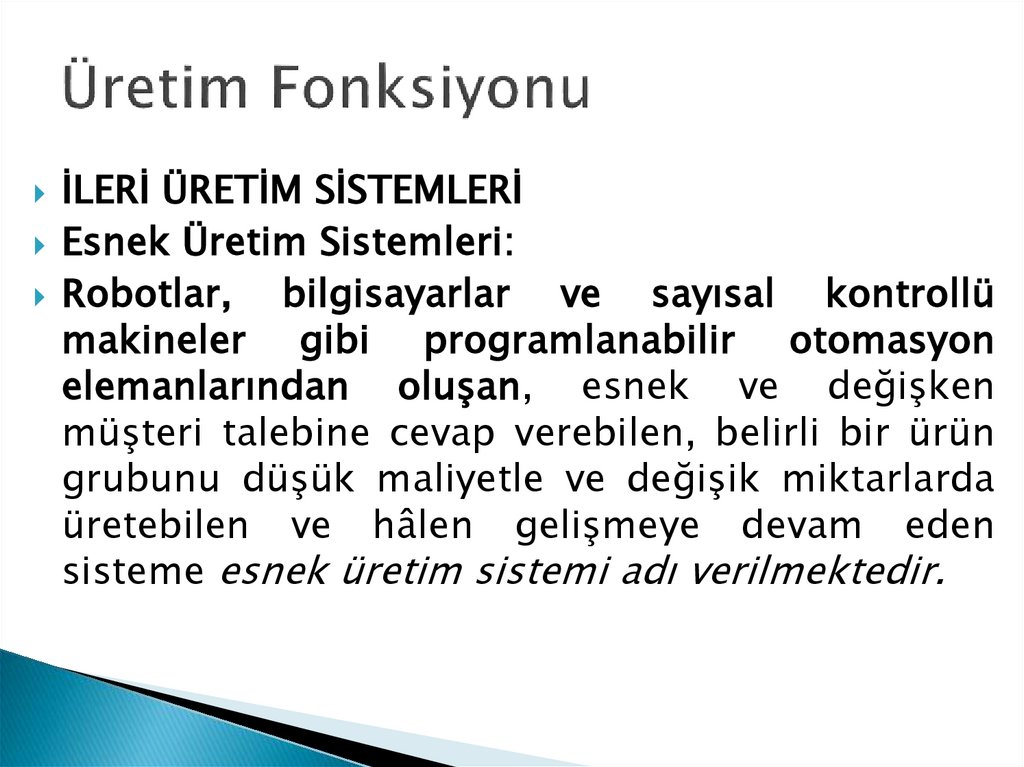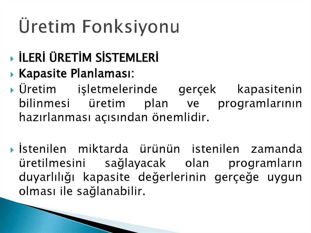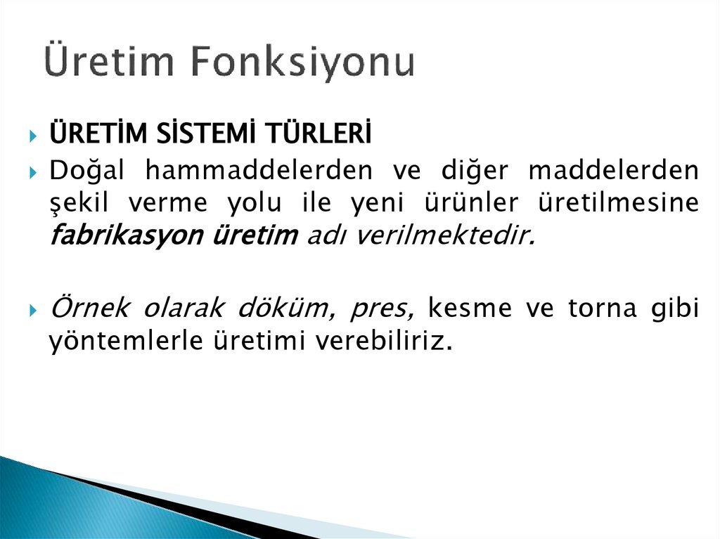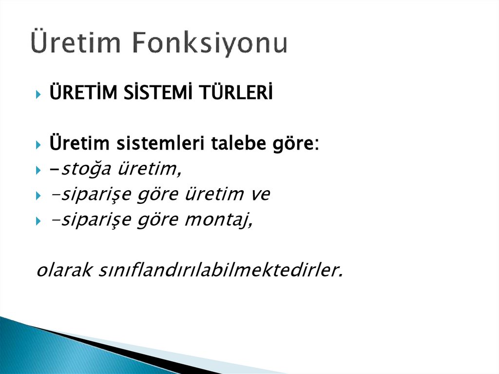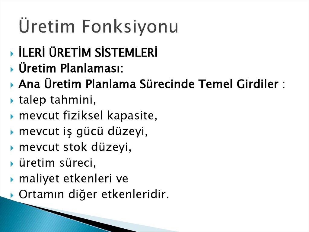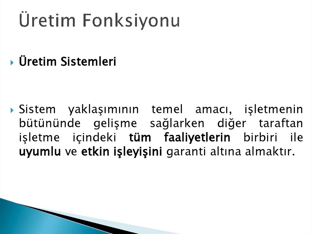 Üretim Sistemleri8. Üretim Fonksiyonu