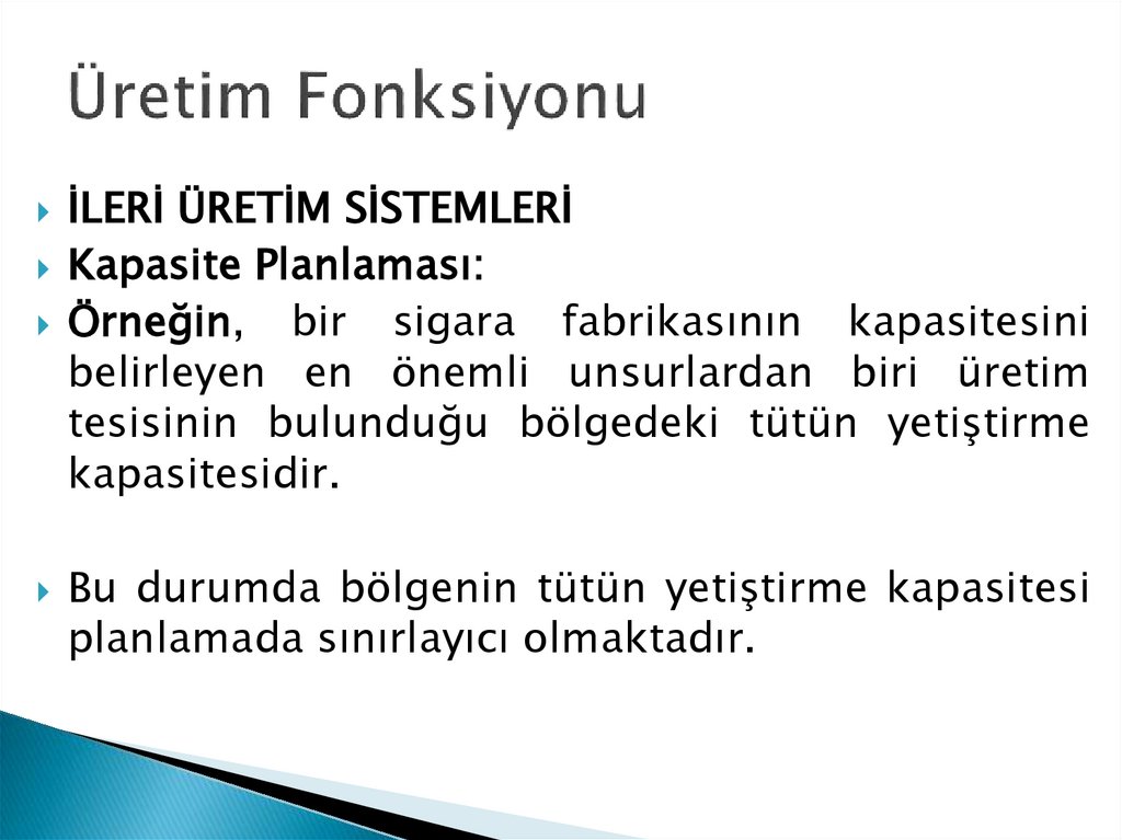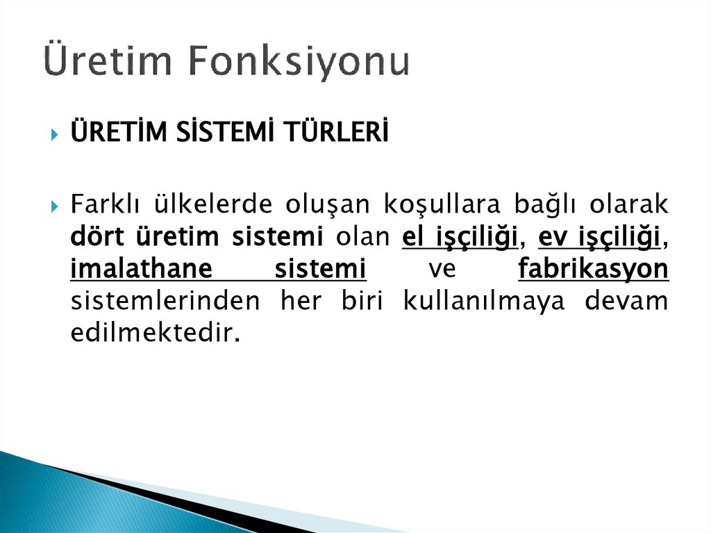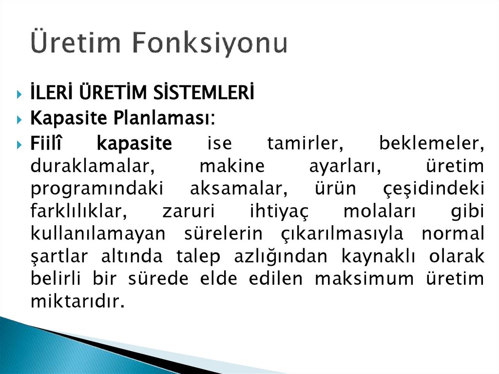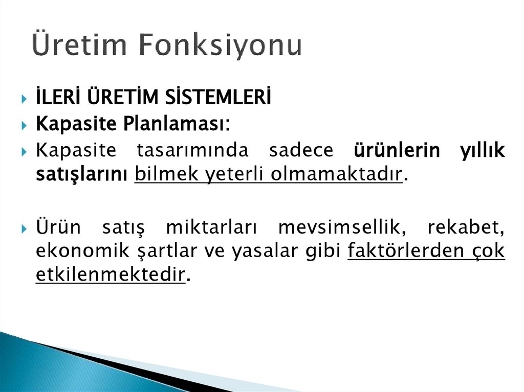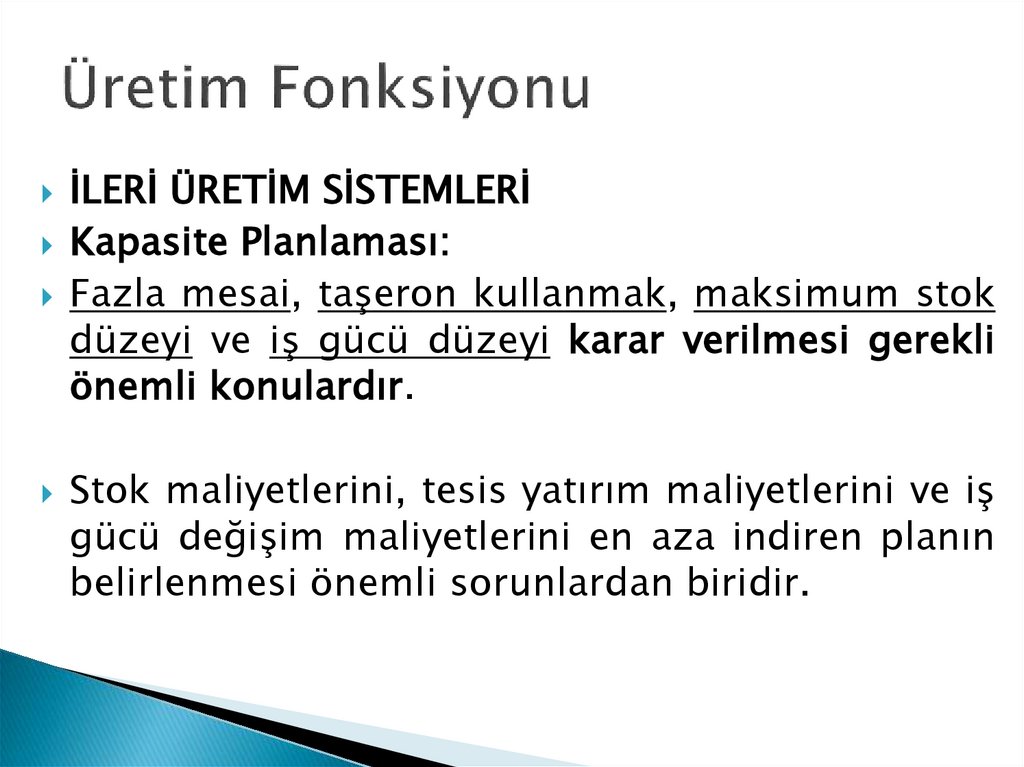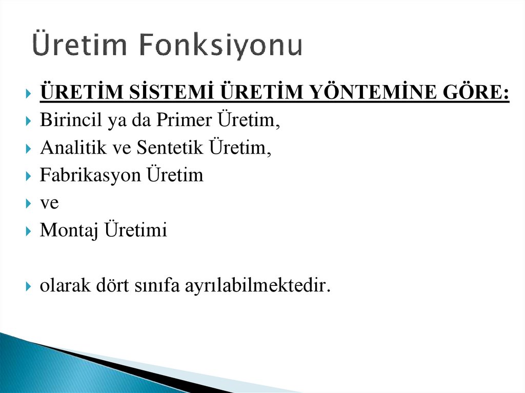 Üretim Sistemleri8. Üretim Fonksiyonu
