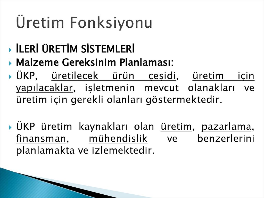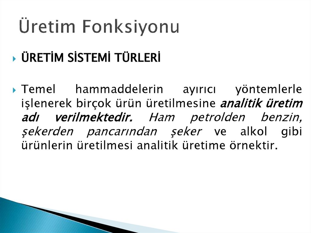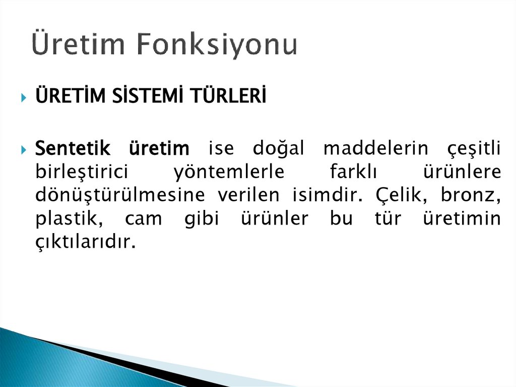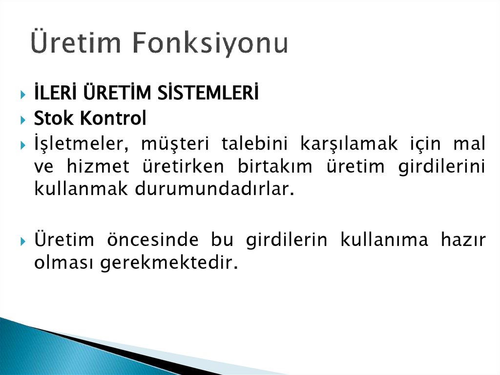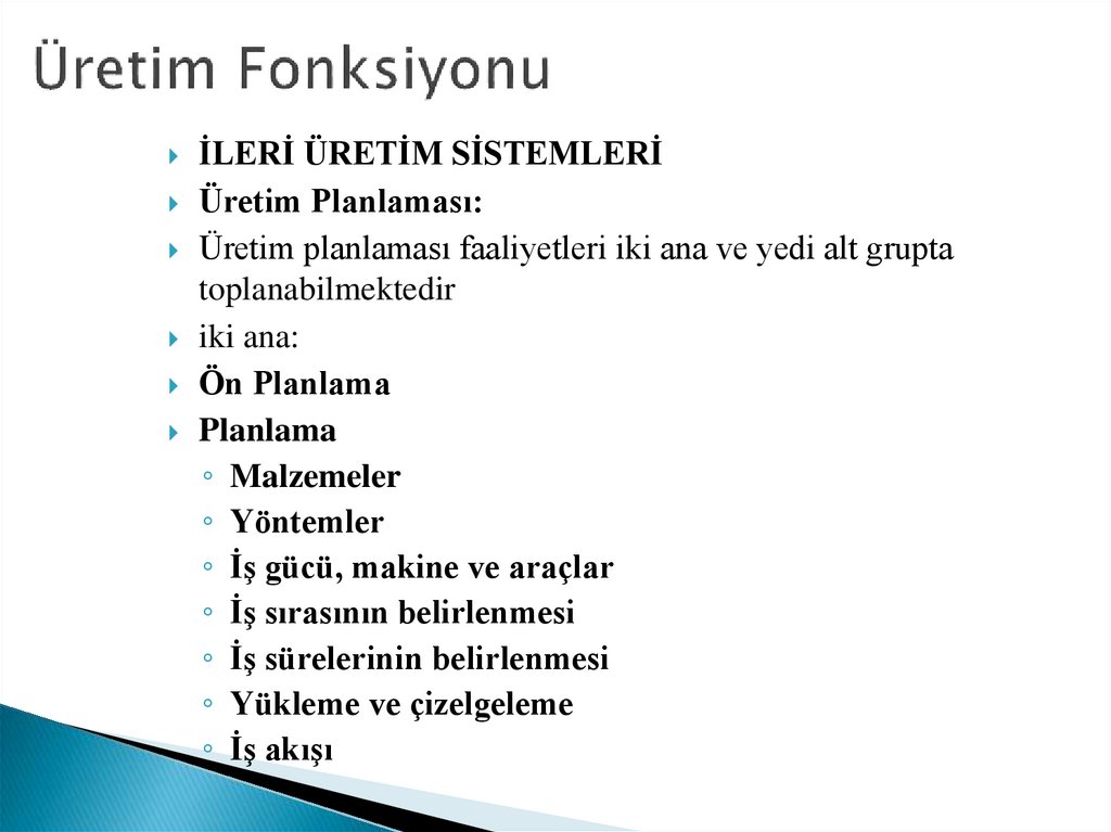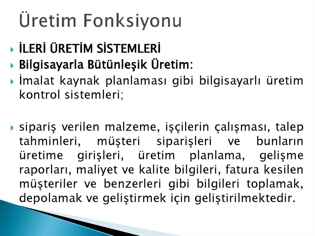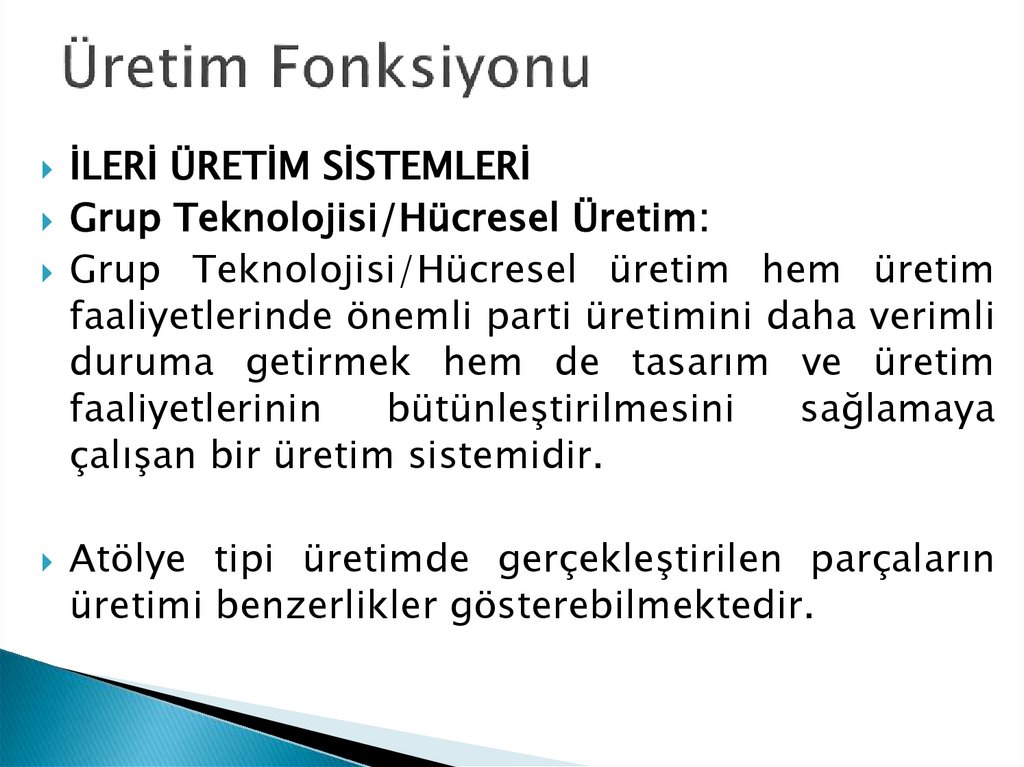 Üretim Sistemleri8. Üretim Fonksiyonu